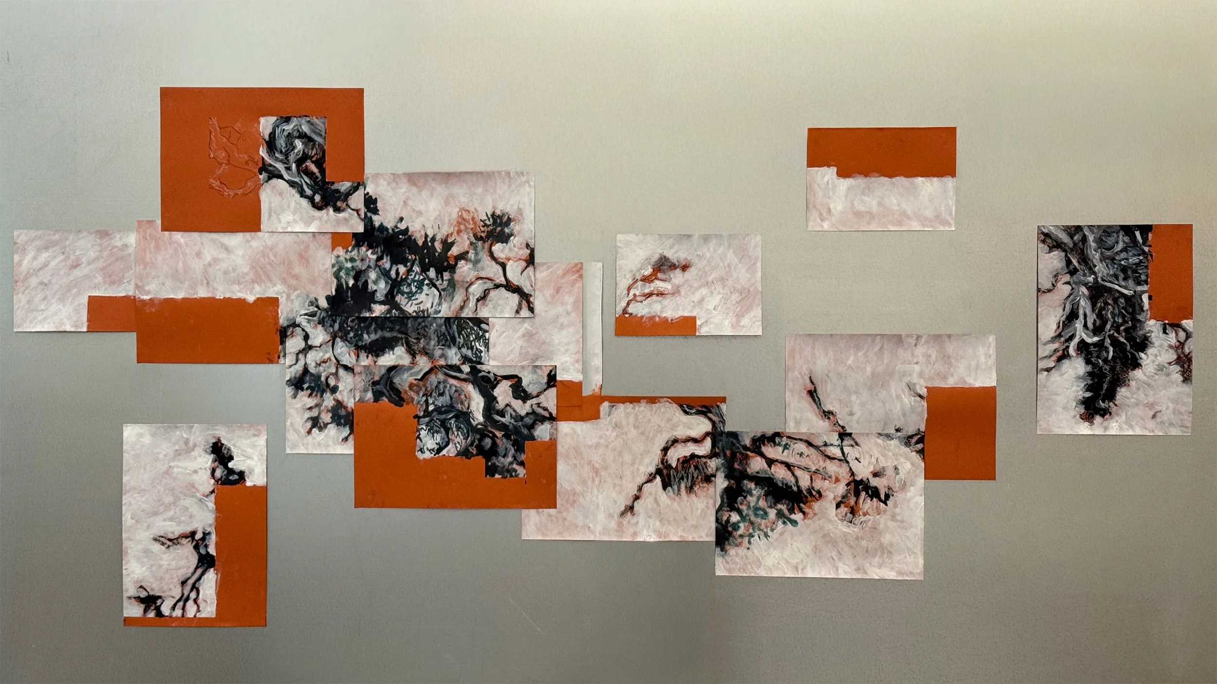 installed at Forest Unseen at the Petaluma Arts Center, 2025 // (six-panel works on the right by Jennifer Tatum)