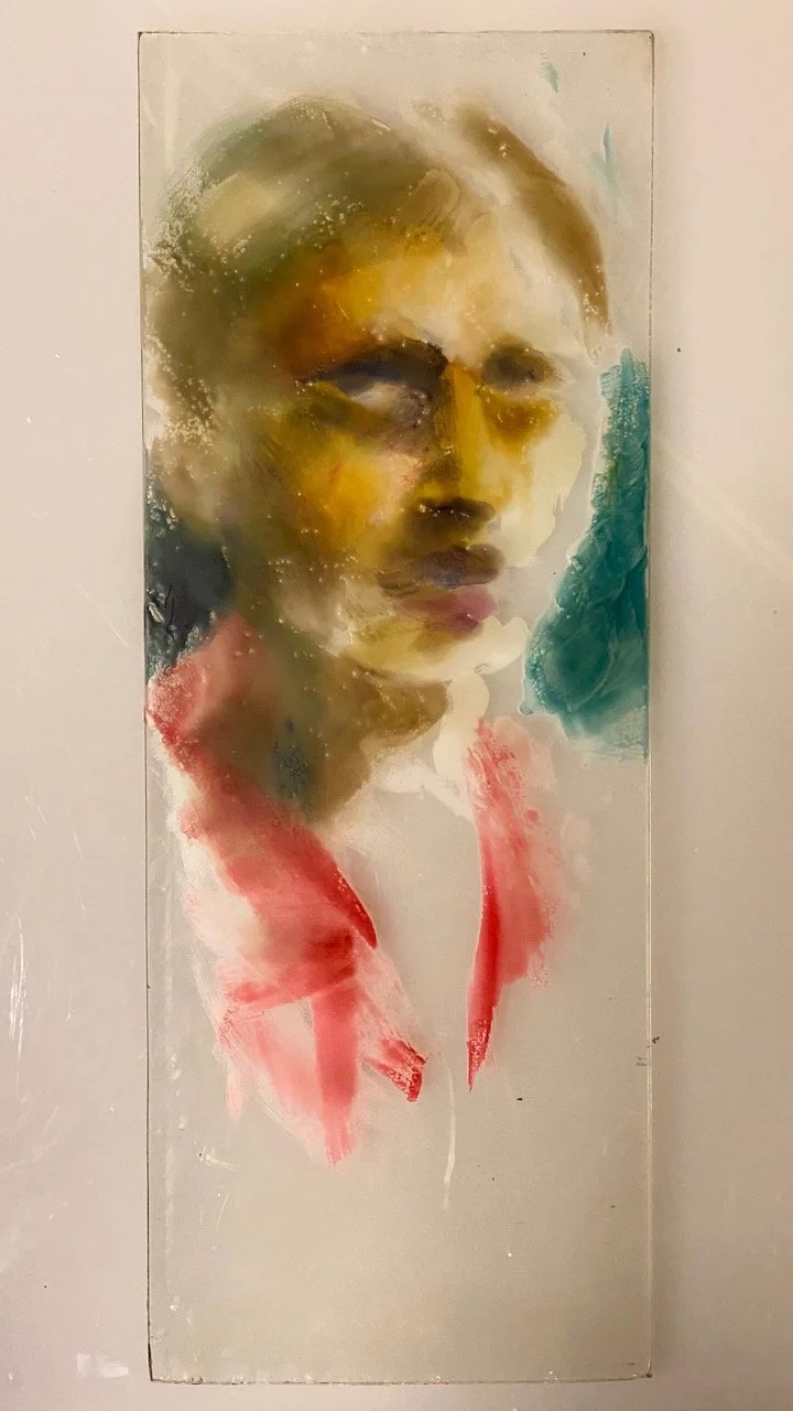 10x20" encaustic on glass. front-lit. Two Faces
